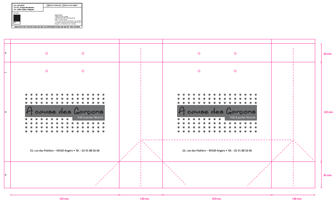 Ci-dessous le bon à tirer (BAT) de ces sac simples et chics à la fois