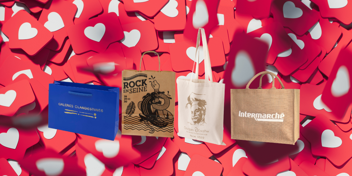 Il existe une variété de sacs publicitaires parmi lesquels choisir. Parmi les plus populaires, citons les sacs en coton (tote bags ou sacs cabas), en polyester, en toile de jute, en papier à poignées plates ou à poignées torsadées et les sacs en papier luxe. Chaque type de sac a ses avantages et ses caractéristiques spécifiques. Choisissez celui qui correspond le mieux à votre marque et à votre public.