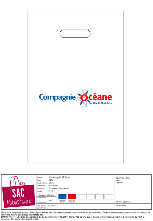 Afin de promouvoir son activité, Compagnie Océane nous a commandé des sacs plastiques avec impression 2 couleurs. Des sacs sobres et élégant, reproduisant le logo au centre avec discrétion. Des sacs dans le vent !