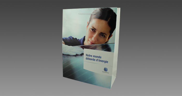 Bon à savoir: l’impression offset utilisée pour les sacs papier luxes est idéale pour reproduire les visuels en quadrichromie tel que celui de Conergy par exemple.