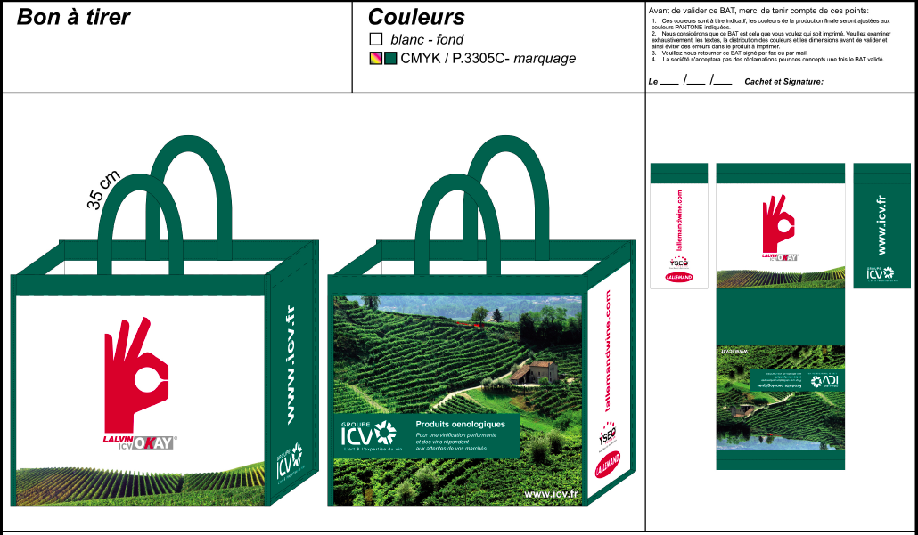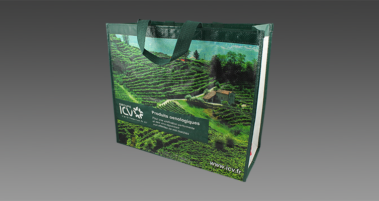 A l’occasion de divers évènements pour lesquels ICV souhaitait communiquer, nous avons réalisé des sacs cabas en polypropylène tissé avec pelliculage brillant et impression 5 couleurs (quadrichromie + 1 couleur). Des sacs réutilisables à l’envie et pouvant accueillir quelques bonnes bouteilles… A partager !