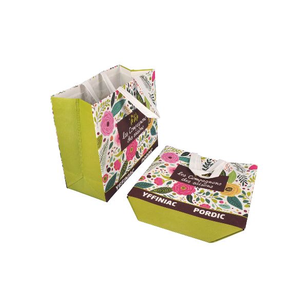 Nous vous proposons ici un sac publicitaire non tissé fabriqué à partir d’une matière synthétique. Cette dernière lui confère une résistance optimale. Ce modèle convient ainsi à tous les usages que ce soit dans une boutique ou une épicerie, un salon ou un évènement. Son grand plus réside également dans le fait qu’il soit réutilisable plusieurs fois. Grâce à des poignées soudées, ce sac publicitaire pelliculé convient pour transporter toutes sortes de courses. Pour la personnalisation, vous avez au choix un pelliculage mat ou brillant. Impression flexographie haute définition 1 à 6 couleurs ou impression en quadrichromie jusqu’à 4 couleurs, à vous de sélectionner ce qu’il y a de meilleur pour mieux refléter l’image de votre enseigne. Un formulaire de demande de devis est accessible sur notre site. Vous n’avez qu’à le remplir pour obtenir un devis le plus rapidement possible.