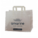 Sac publicitaire en papier, finition automatique, poignées plates en papier collées à l’intérieur du sac, patch de renfort collé à l'intérieur.