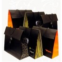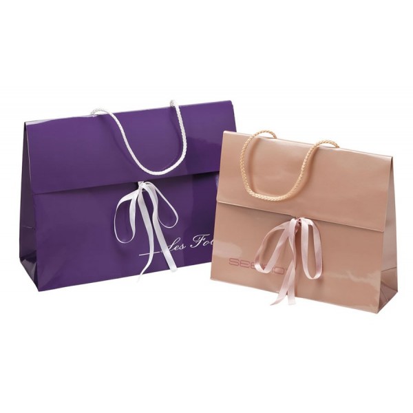 Ce modèle, outre son design hors du commun, dispose d’un atout marketing infaillible. Il peut faire office de support de communication où vous pouvez laisser vos coordonnées, imprimer les couleurs qui rappellent votre enseigne et pourquoi pas un visuel ou un slogan pour plus d’originalité.Fabriqué minutieusement à la main, ce sac publicitaire personnalisé bénéficie d’un soin particulier. Très élégant avec ses soufflets latéraux et son rabat, il convient aux hôtels, boutiques, SPA, salons et aux divers évènements. Ce modèle est conçu avec un fond cartonné, des poignées en cordelette ainsi qu’un ruban décoratif en satin faisant de lui un cadeau à part entière. Nous vous proposons plusieurs choix de finitions pour personnaliser votre sac papier luxe publicitaire : pelliculage, dorure et vernissage. Aussi, nous mettons à votre disposition une large gamme de papiers haut de gamme dont du kraft blanc semi-rigide biodégradable, du kraft brun rigide biodégradable ou encore du papier couché rigide 190 g. Vous pouvez également choisir l’impression en relief pour donner plus d’effet à votre sac papier publicitaire.