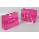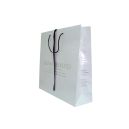 Sac publicitaire en papier fabriqué manuellement, avec fond cartonné et revers, nombreux choix de finitions, de poignées nouées à la main et de papier haut de gamme.