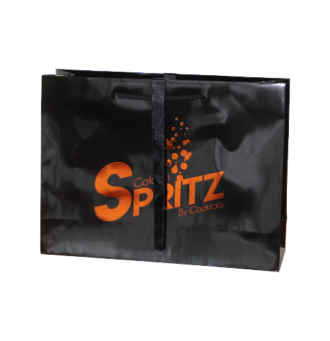 Sac publicitaire en papier réalisé manuellement avec fond cartonné et revers, nombreux choix de finitions, de poignées et de papier haut de gamme. Impression en 6 couleurs.