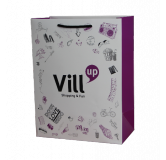 Sac publicitaire en papier réalisé manuellement avec fond cartonné et revers, nombreux choix de finitions, de poignées et de papier haut de gamme. Impression 1 à 6 couleurs.
