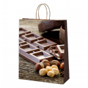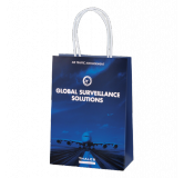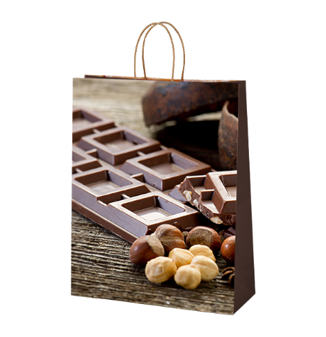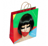Sac publicitaire en papier en finition automatique, poignées torsadées en papier ou coton, patch de renfort de papier contrecollé à l'intérieur et revers sur la partie supérieure. Quantité min. 2 000 ex. Impression offset 1 à 4 couleurs ou quadrichromie. Délai de fabrication et de livraison: à partir de 4 semaines. Idéal pour boutiques et salons.