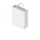 Sac publicitaire en papier en finition automatique, poignées torsadées en papier ou coton, patch de renfort de papier contrecollé à l'intérieur. Quantité min. 3 000 ex. Impression 1 à 6 couleurs. Dim.: 55(L) + 14(S) x 45(H). Idéal pour tout type commerce.