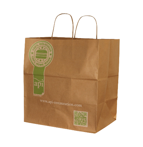 Nous pouvons alors vous proposer un sac en papier, tout en vous laissant maître du choix exact de ce papier, depuis le simple papier kraft Havane recyclé jusqu’au papier Kraft blanc vergé. Profitez de cette réponse apportée à vos clients, pour marquer votre engagement dans la cause écologique, sensible aux yeux de l’ensemble de votre clientèle.