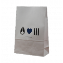 Sac publicitaire en papier kraft une ou deux couches, finition automatique, sans poignées ou SOS. Format idéal pour la restauration rapide et les commerces alimentaires. Disponible à partir de 5 000 exemplaires selon les formats. Impression 1 à 4 couleurs possibles selon quantités. Délai de fabrication et de livraison: à partir de 4 semaines.