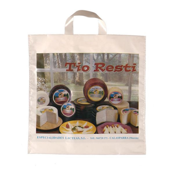 Sac publicitaire en plastique personnalisé à anses souples avec soufflet de fond. Ce sac en plastique valorisera l'image de votre enseigne de part sa conception élaborée.