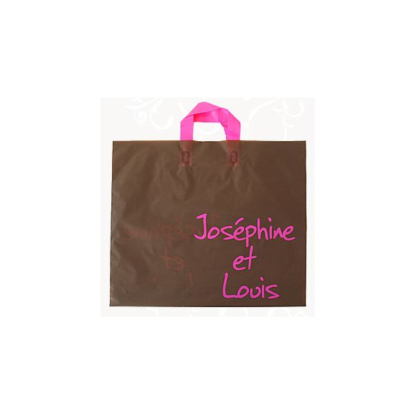 Sac publicitaire en plastique personnalisé à poignées anses souples et soufflet de fond, disponible dans une large gamme d'épaisseur, de matières, de taille et de couleurs. Sac valorisant votre image, idéal pour boutiques. Impression 1 à 4 couleurs. Quantité min.:3 000 ex. Délai de fabrication et de livraison: 4 semaines.