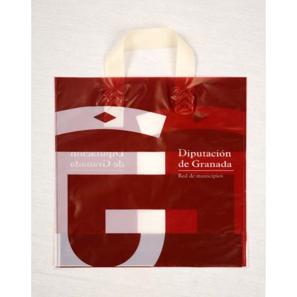 Sac publicitaire en plastique personnalisé à anses souples sans soufflet de fond. Ce sac en plastique valorisera l'image de votre enseigne de part sa conception élaborée.