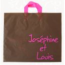 Sac publicitaire en plastique personnalisé à poignées anses souples, disponible dans une large gamme d'épaisseur, de matières, de taille et de couleurs. Sac valorisant votre image, idéal pour boutiques. Impression 1 à 8 couleurs selon quantités. Quantité min.:3 000 ex. Délai de fabrication et de livraison: 4 semaines. Dim.: 60(L) x 50 (H)