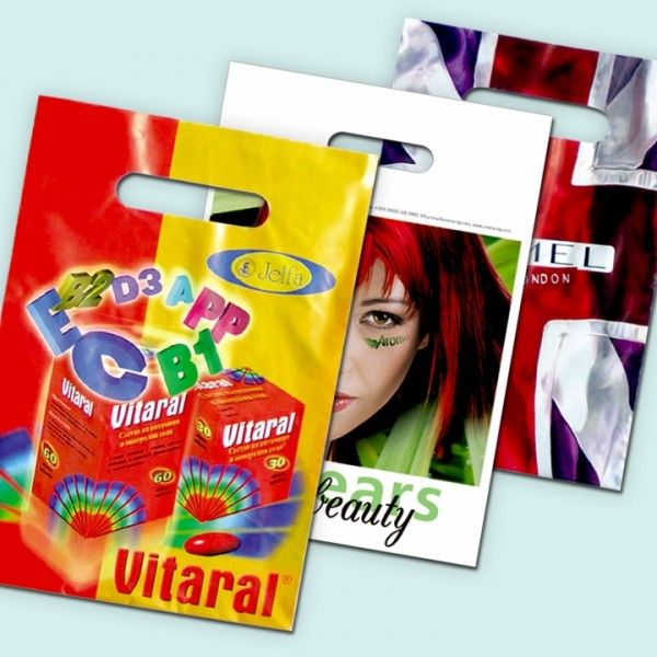 Les sacs plastiques publicitaires à poignées découpées simples avec soufflet de fond en taille 1 sont de très bons supports publicitaires. Ils sont personnalisables en une ou quatre couleurs en flexographie.