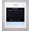 Sac publicitaire en plastique personnalisé de grande contenance à poignées découpées simples et soufflets latéraux. Sac idéal pour boutiques.Impression 1 à 4 couleurs.