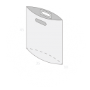 Sac publicitaire en plastique personnalisé à poignées découpées renforcées et soufflet de fond. Le soufflet de fond permet d'augmenter la contenance du sac.