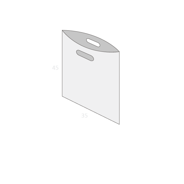 Sac publicitaire en plastique personnalisé à poignées découpées renforcées sans soufflet de fond. Ce sac en plastique est résistant et à usages multiples.