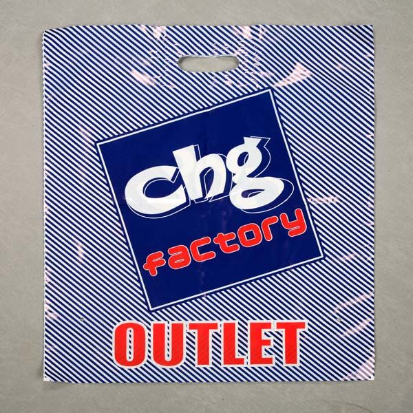 Sac publicitaire en plastique personnalisé à poignées découpées renforcées sans soufflet de fond. Ce sac en plastique est résistant et à usages multiples.