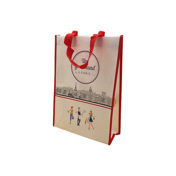 Sac cabas personnalisé en PP non tissé (TNT) avec plastification 30+15x35 cm