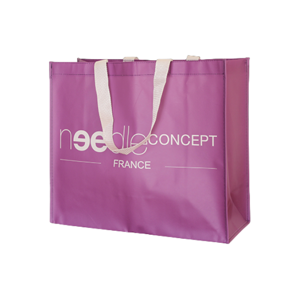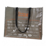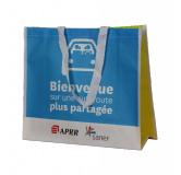 Sac cabas publicitaire réutilisable et recyclable en Polypropylène non tissé (TNT) plastifié. Ce type de sac en matière synthétique est à la fois résistant et facile à nettoyer. Sac cabas principalement destiné aux boutiques, salons et évènements promotionnels. Délai de fabrication: à partir de 5 semaines. Quantité min.:500 ex.