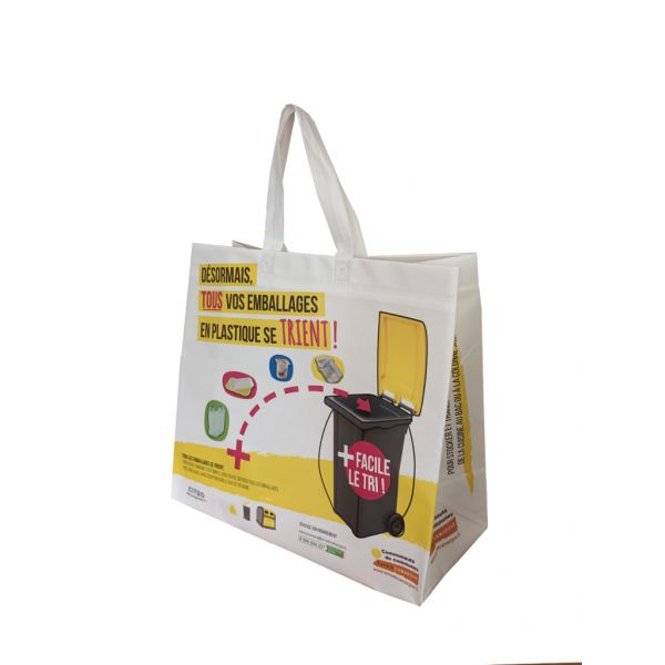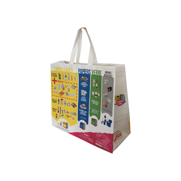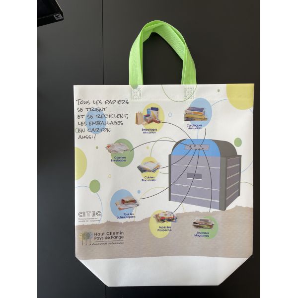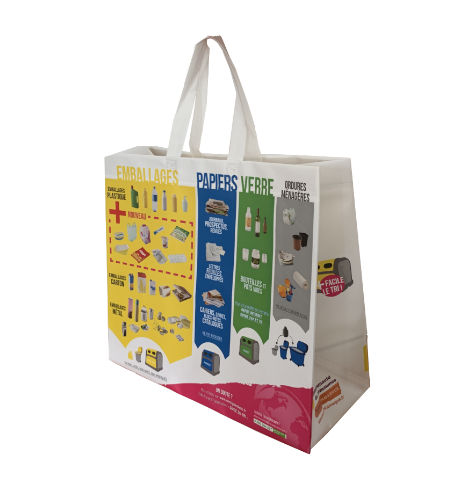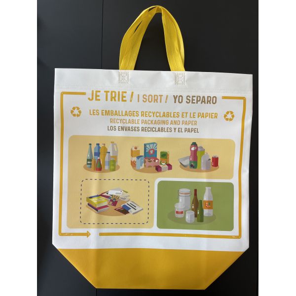 - Sac cabas réutilisable idéal pour la précollecte de déchets, pour les salons et évènements et pour faire ses courses.