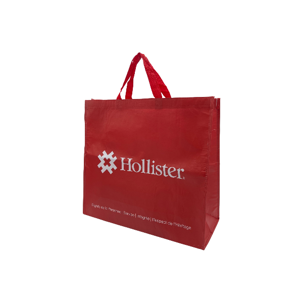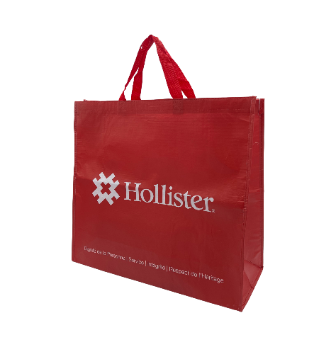 Sac cabas publicitaire réutilisable et recyclable en polyéthylène fabriqué avec 80% de matière recyclée (bouteilles en plastique). Ce type de sac en matière synthétique est à la fois résistant et facile à nettoyer. Sacs cabas principalement destinés aux enseignes écologiques.