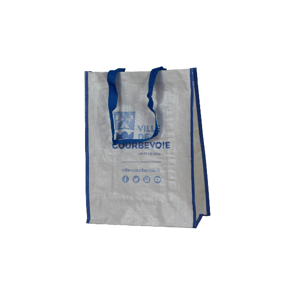 Sac cabas réutilisable et recyclable en polypropylène (PP) tissé. Ce modèle de sac en matière synthétique est à la fois très résistant et facile à nettoyer. Ce type de sac cabas est réutilisables des centaines de fois, ce qui en fait un sac particulièrement respectueux de l'environnement. Il a une durée de vie de plusieurs années.