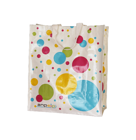 Sac cabas publicitaire réutilisable et recyclable en polypropylène tissé. Ce type de sac en matière synthétique est à la fois résistant et facile à nettoyer. Sac cabas destiné à tout type d'enseigne. Toutes dimensions possibles. Délai de fabrication: à partir de 3 semaines. Quantité min.: 1 000 ex. (250 ex pour 1 ou 2 couleurs).