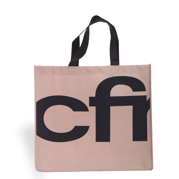 Sac cabas réutilisable et recyclable en polypropylène non tissé (TNT). Ce modèle de sac en matière synthétique est à la fois bon marché et rapide à fabriquer (à partir de 5 semaines). Sac cabas principalement destiné aux boutiques, salons et évènements promotionnels.