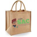 Sac cabas biodégradable en toile de jute format carré. Aspect écologique et résistant. Petit format de sac en toile de jute idéal pour les petits achats en centre ville ou pour partir en ballade. Sac à destination des magasins bio ou des enseignes de prêt à porter. Quantité min.: 150 ex. Délai de fabrication et de livraison: à partir de 2-3 semaines