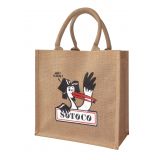 Sac cabas biodégradable en toile de jute format paysage. Aspect écologique et résistant. Sac en toile de jute idéal pour les achats en centre ville ou pour de petits achats en hypermarchés. Sac à destination des magasins bio, hypermarchés, bouchers, charcutiers, enseignes de prêt à porter... Quantité min.: 150 ex. Délai de livraison: à partir de 2-3 semaines