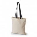 Tote bag personnalisable en coton naturel certifié Oeko-Tex Standard 100 avec des anses longues noires. Aspect écologique et résistant. Quantité min.: 100 ex. Délai de fabrication et de livraison: à partir de 2 semaines.